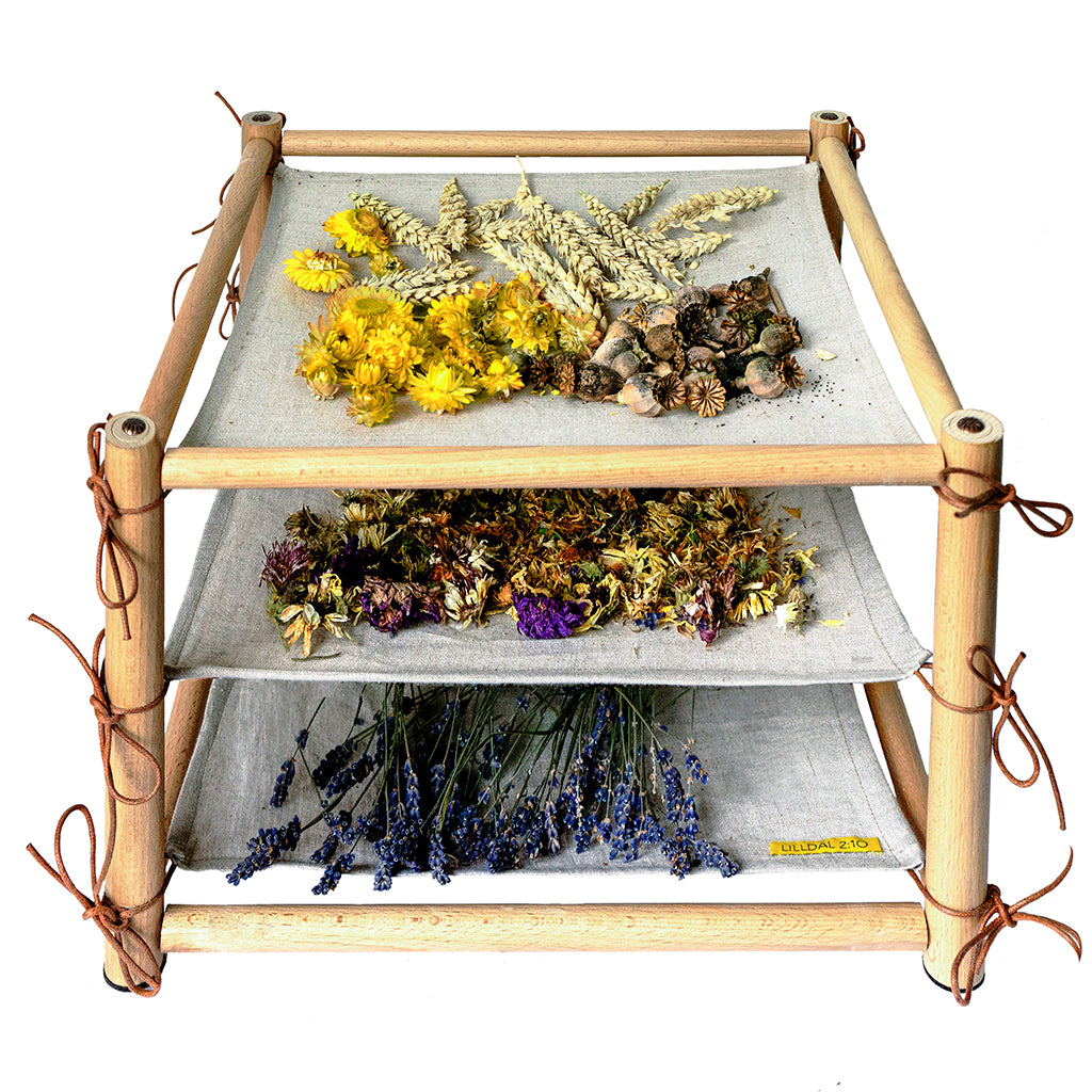 This practical and beautiful drying rack allows your herbs and flowers to dry by air – a natural and effective method for preservation, used by civilisations from the Incas to the Greeks and Romans. Use for drying herbs, seeds, flowers, chillies and mushrooms et.al. Preserve food, intensify flavours and enjoy your homegrown and foraged harvests all year round. This herb dryer is a great gift for anyone who is gardening, loves to cook – or both!